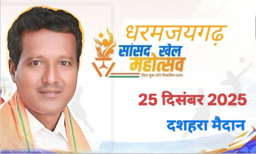 • धरमजयगढ़ में सांसद क्षेत्र स्तरीय सांसद खेल महोत्सव 2025 का भव्य आयोजन 25 दिसंबर को रायगढ़, जशपुर एवं सारंगढ़-बिलाईगढ़ के 400 खिलाड़ी लेंगे हिस्सा।